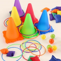 - 3 játék 1-ben: labdák a bójákba, babzsákdobás, karikadobás