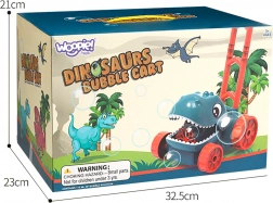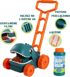 Tolás közben egy mechanizmus számtalan buborékot fúj ki a dinoszaurusz szájából – azonnali öröm és végtelen szabadtéri szórakozás.