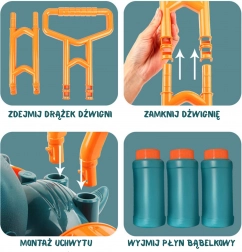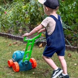 Ez a színes dinoszauruszos fűnyíró mozgásra csábítja a gyerekeket – csak töltsd az oldatot a tartályba, kapcsold be, és tolás közben beindul a buborékkészítő mechanizmus, amely buborékáradatot fúj. A puha vonalak, a barátságos arckifejezés és a stabil kerekek biztonságos és örömteli játékot támogatnak a kertben és a járdán egyaránt.