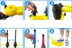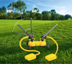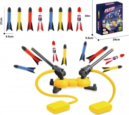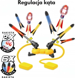 Dupla habrakéta indító ideális aktív szórakozásra a kertben, parkban vagy a játszótéren. A rakéták könnyűek, puha habból készültek, biztonságosak a gyerekeknek, és minden indításnál izgalmat nyújtanak. Az állítható indítók lehetővé teszik a szög bármilyen beállítását (30°-tól 90°-ig) és a kilövési irányt.