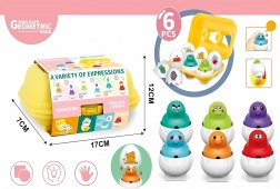Minden tojás alján egyedi geometriai forma található, amely illeszkedik a megfelelő nyílásba a dobozban. A vidám arcok nagyszerűen segítik a gyerekeket az érzelmek felismerésében és megnevezésében. Könnyedén és élvezettel sajátítják el, hogyan néznek ki a különféle érzelmek és mit jelentenek. Ez a játék fantasztikus edzést nyújt a logikus gondolkodás és a koordináció számára!
