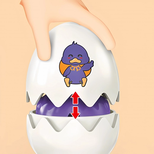 Woopie márkájú játéktojások bevezetik gyermekét a színek, formák és vidám arcok világába. Mind a hat aranyos tojás egy színes csibét rejt vicces arckifejezéssel, amely megnyomva hangeffektust ad ki. A cél nemcsak a megfelelő héj összerakása, hanem annak elhelyezése is a megfelelő helyre a tartóban.