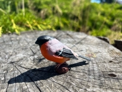 A precíz kézi festés kiemeli a süvöltő jellegzetes színeit – a telt narancstól a kontrasztos fekete és szürke árnyalatokig.