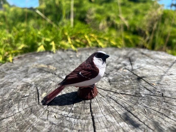 Gondos formázás és kézi festés emeli ki a veréb élethű jegyeit – a tollazat textúrájától a hiteles színezésig.
