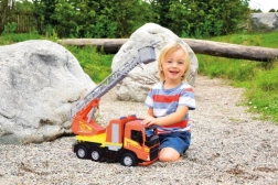 A Lena VOLVO tűzoltóautó remek választás az akciódús mentős játékokat kedvelő gyerekeknek. A beépített tartálynak és a permetező tömlőnek köszönhetően, amely akár 3 méterre is spriccel, a kis tűzoltók bármelyik „tűzoltó” kihívással megbirkóznak. A forgatható (270°) és kihúzható létra 60 cm-ig lehetővé teszi a mentést „magasban” is.