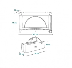 A kiságy ideális kisebb helyekre, és a gyors összecsukhatóságnak köszönhetően könnyen és gyorsan használható. Két magassági szinttel állítható matracot biztosít, amely rugalmasságot garantál. Az oldalsó cipzáras kijáratnak köszönhetően a gyermek számára egyszerű a be- és kijutás.