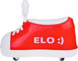 A Piros Elo guruló jármű egyedi megjelenésével azonnal vonzza a figyelmet. Az ELO :) és OLE :) feliratokkal ellátott nagy piros cipő dizájn minden arcra mosolyt csal.