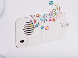 Vidám zene aktiválható a jármű alján található gomb megnyomásával, további szórakozást nyújtva a kis vezetőknek!