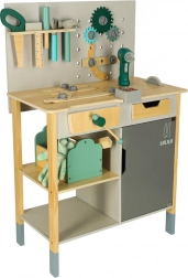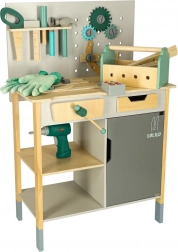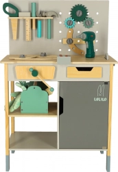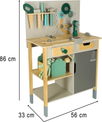 Gyermek szerszámkészlet mini szerszámokat tartalmaz a finommotoros készségek gyakorlásához és egy biztonságos környezetet, ahol a gyermek elsajátíthatja a szerszámok használatához szükséges készségeket. Ezzel a készlettel a gyermek megtanulja megkülönböztetni a szerszámokat és megérti a velük való munka szabályait.