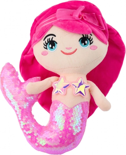 A plüss sellő nagy, hímzett szemekkel, mosolygó arccal és masnival díszített rózsaszín hajjal rendelkezik. Az ő látványos csillogó farka a fényesből mattá vált, ami örömet nyújt a gyerekeknek, és fejleszti az érintési érzéküket és képzelőerejüket.