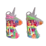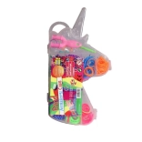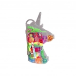 Minden szépen csomagolva van egy praktikus műanyag egyszarvú alakú dobozban, amely kisebb rekeszeket tartalmaz a gumiszalagok szín szerinti rendezett elrendezéséhez. Ez a készlet nemcsak szórakoztató, hanem fejleszti a gyermekek kreativitását és finom motorikus képességeit is.
