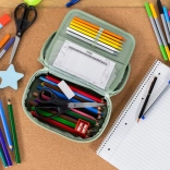 Az Etue Mentol iskolai tolltartó tágas, dupla kihajtható füllel és belső zsebbel. Az anyag tartós, újrahasznosított, és YKK cipzárak biztosítják a kiváló tartósságot. A cipőzsák erős, mosható anyagból készült, zsinóros zárással a kényelmes hátizsákos viseletért.