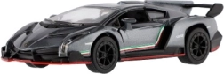 Élvezze a sebesség varázsát ezzel az autentikus Lamborghini Veneno autómodellel, amely fém- és műanyag elemek kombinációjával pontosan reprodukálja az ikonikus designt. 13 cm hosszúságával ideális nemcsak 3 évesnél idősebb gyerekek számára játékként, hanem gyűjtőknek is az autós világ rajongóinak.