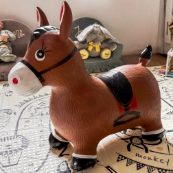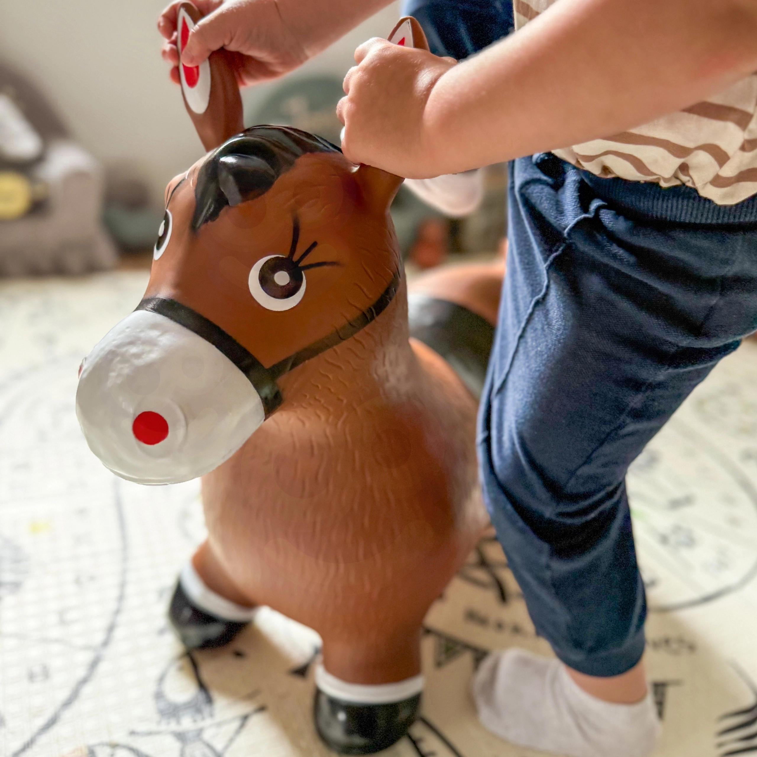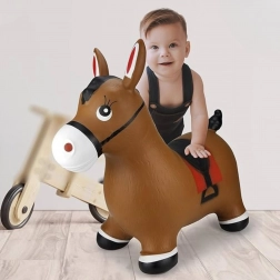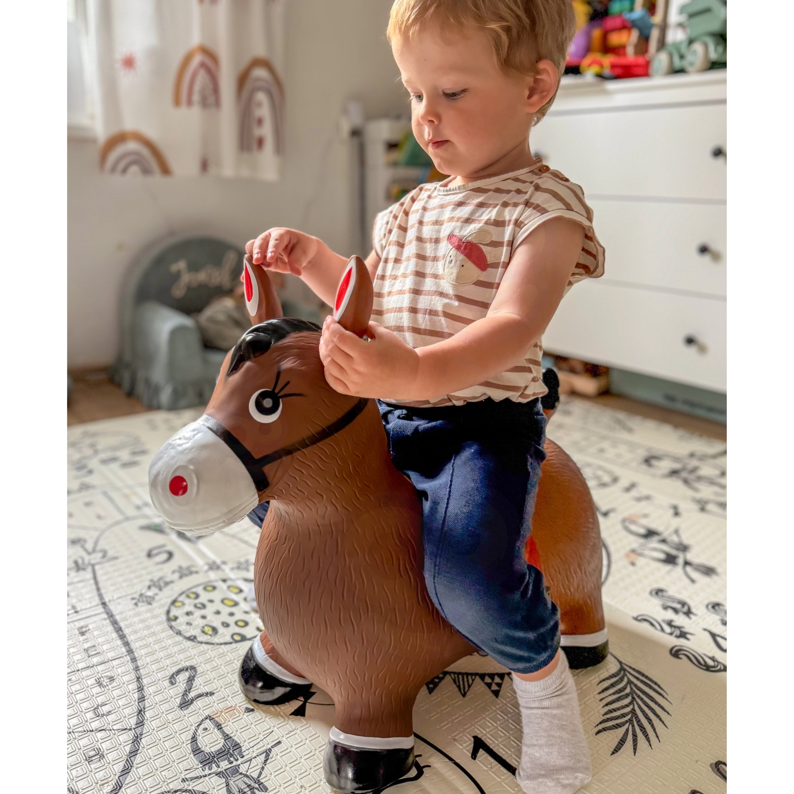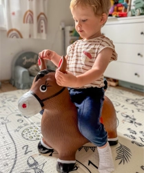 A bájos, barna ló nyergével ösztönzi a játékot és serkenti a képzeletet. A maximális teherbírás 45 kg, az ajánlott 0,3–0,4 bar felfújási nyomás biztosítja a megfelelő rugalmasságot a kényelmes ugráláshoz. A csomag praktikus pumpát tartalmaz, így a móka a kicsomagolás után azonnal kezdődhet.
