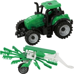 Valósághű Woopie márkájú traktor intenzív zöld színben gereblyével, amely kiváló szórakozást nyújt minden kis járműrajongónak. A traktor masszív kivitelével és részletgazdagságával vonzza a gyermekeket kreatív játékra és a farmmunka megismerésére.