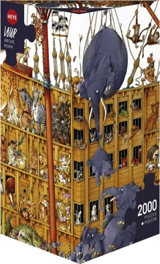 Szórakozzon a Noé Bárkája puzzle-val a HEYE-től 2000 darabbal és poszterrel az eredeti háromszög alakú dobozban.