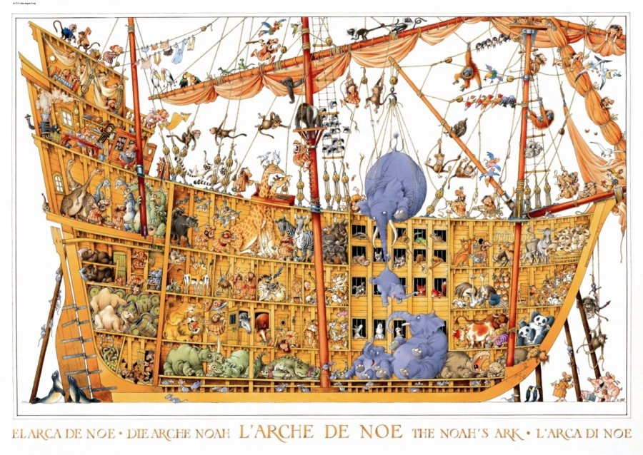 Puzzle Noé Bárkája a neves karikaturista Loup-tól származik és egyedi háromszög alakú dobozban kínál 2000 darab szórakozást, valamint posztert tartalmaz mintának.