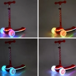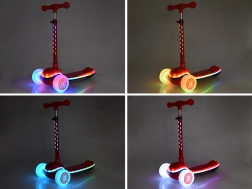 A roller az első gurulásokhoz és az egyensúly fejlesztéséhez készült. A dupla első kerekek és a széles platform növelik a stabilitást, míg a magasságban állítható kormány a gyermek növekedéséhez igazítható. A kerekekben és a vázban található színes LED-ek minden kiruccanást feldobnak – akár 20 fényüzemmóddal és 4 zenei móddal.