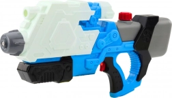 Könnyen megtölthető - csak le kell csavarni a zárókupakot. A fehér-kék design fekete elemekkel divatos és vonzó minden korosztály számára. Ez a vízipuska tartós, biztonságos és felkészült az intenzív használatra.