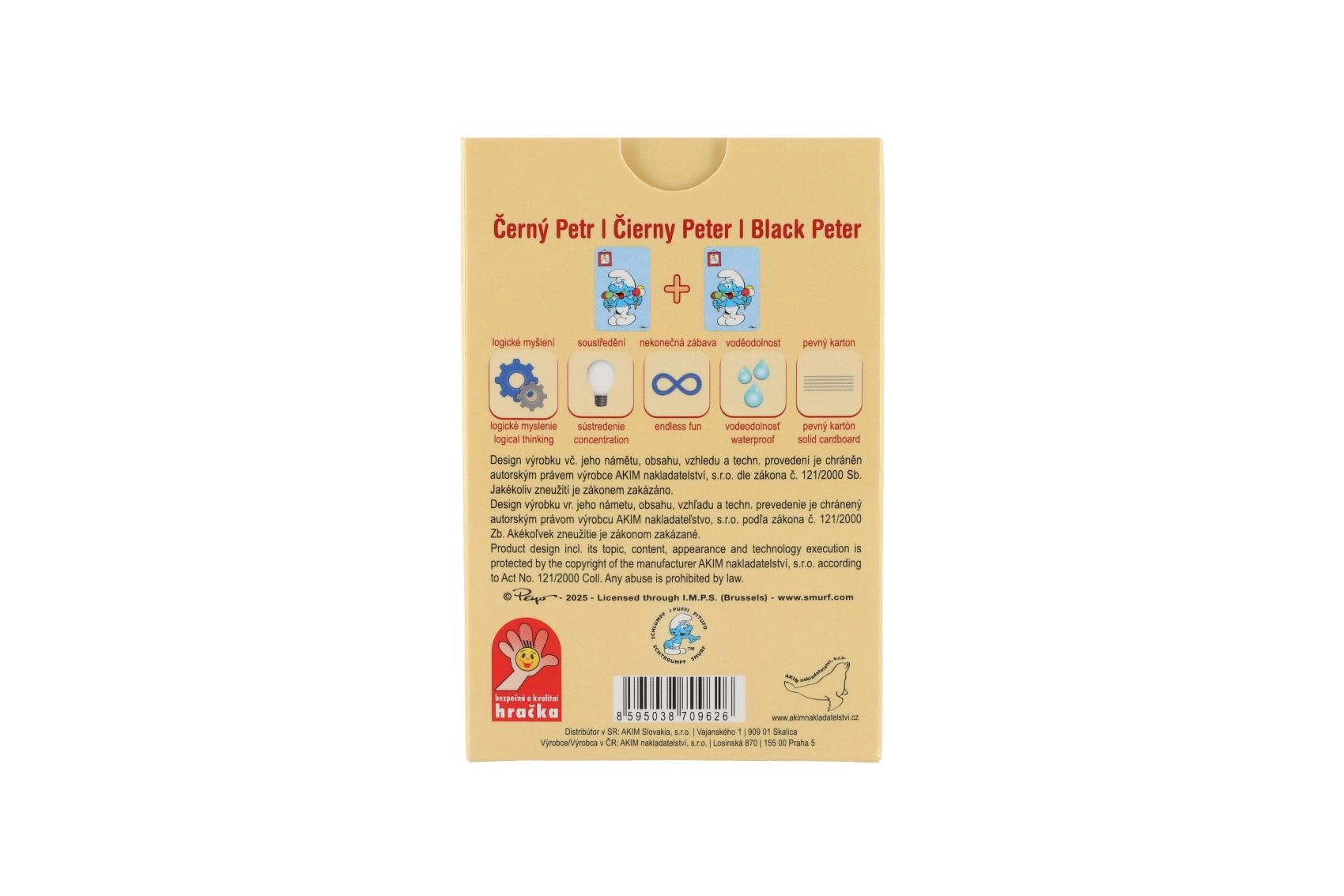 Élvezd a klasszikus Fekete Péter játékot bájos, hupikéktörpős stílusban! A SCHLÜMPFÖK színes illusztrációival díszített kártyák örömet szereznek gyerekeknek és felnőtteknek egyaránt, és rengeteg szórakozást garantálnak otthon és utazás közben. A kompakt csomagolás könnyedén elfér zsebben, hátizsákban vagy bőröndben.