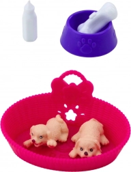 A gyerekek örömet lelnek a két kis kölyökkutyában, amelyeket etethetnek, gondozhatnak, és elhelyezhetnek egy rózsaszín tappancsmintás ágyikóba. Az etetőpalack és a lila tányér csonttal lehetővé teszi a gyerekek számára, hogy élethű jeleneteket játszanak a gondoskodásról, fejlesztve ezzel az empátiát, kreativitást és kézügyességet.