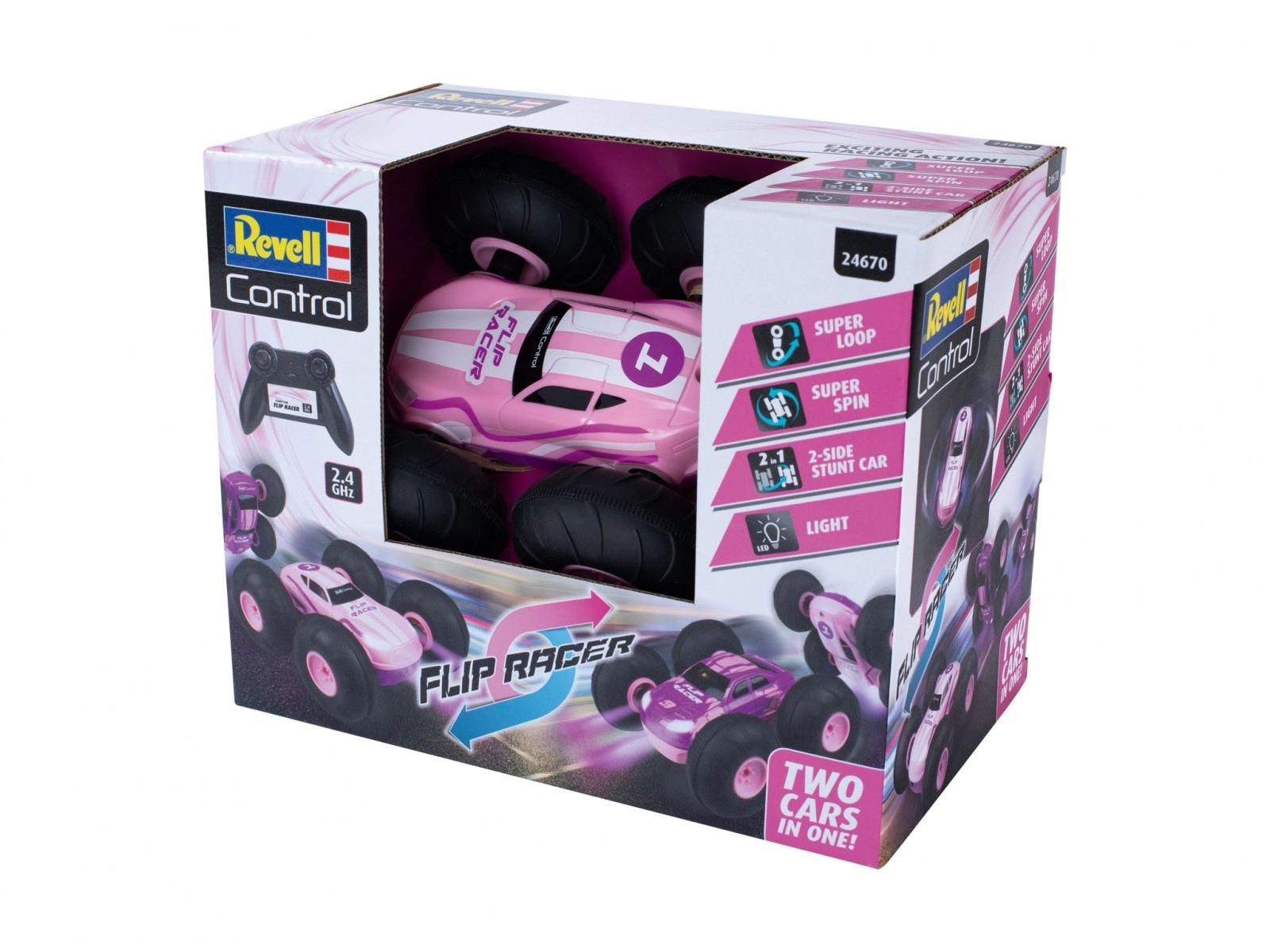 Ideális a kertben, utcán vagy speciális RC kaszkadőr arénában játszani. Erős konstrukciójának köszönhetően a jármű nagyon tartós, és képes kezelni a legnehezebb trükköket is. Az RC Kaszkadőr Autó Flip Racer nagyszerű ajándék az RC és autóipar rajongóknak. Felkelti a figyelmet rózsaszín designjával és részletes festésével.