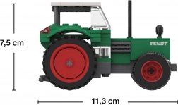 A Fendt Farmer 105S modell az 1980-as és 1990-es évek valós traktorai alapján készült, ami hűen visszaadja a dizájnt és a jellegzetes elemeket. Az építőkészlet 114 darabból áll, és 6 éves kortól ajánlott, de a felnőttek számára is örömöt nyújthat.