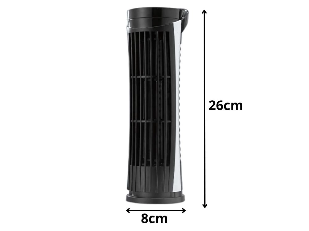 Élvezze a frissítő légáramot az íróasztalon vagy az éjjeliszekrényen. Ez a mini asztali oszlopventilátor karcsú kialakításával, alacsony zajszintjével és egygombos, egyszerű vezérlésével tűnik ki. Az USB-táplálásnak köszönhetően könnyen csatlakoztatható laptophoz, power bankhoz vagy hálózati töltőhöz.
