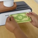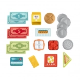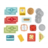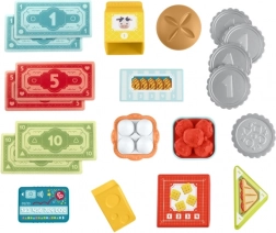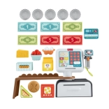 - Pénztárgép szkennerrel, 20 játékelem (bankjegyek, érmék, kártya, élelmiszerek)