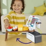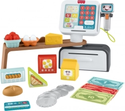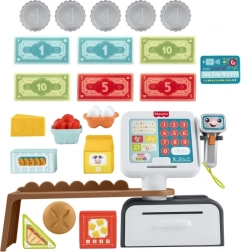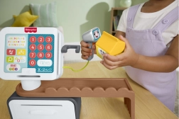 A beszélő Fisher‑Price pénztárgép minden boltos játékot szórakoztató tanulássá varázsol. A gyerekek beolvashatják az élelmiszereket, megnyomhatják a nagy, színes gombokat, bankjegyeket és érméket tehetnek a fiókba, és kártyával is fizethetnek. A bőséges hangos visszajelzés, több mint 150 hanggal és mondattal, támogatja a természetes tanulást és a szókincs fejlődését.