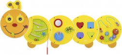 A Fa falra szerelhető játék Hernyó Junior remek választás értelmes szórakozáshoz 18 hónapos kortól. A színes kivitel és a változatos játékelemek első pillantásra lekötik a figyelmet, míg a masszív fali kialakítás helytakarékos és biztonságos használatot nyújt.