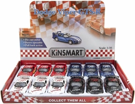 Ez a realisztikus DODGE VIPER GTS‑R sportautó‑modell kiválóan ötvözi a fém karosszériát, a részletgazdag kidolgozást és a szórakoztató visszahúzós meghajtást. A nyitható ajtóknak és a markáns versenyelemeknek köszönhetően hűen idézi egy valódi versenygép hangulatát.