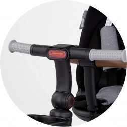 Ez a háromkerekű multifunkciós 2v1 jellemzőkkel bír, ami azt jelenti, hogy könnyen átalakítható gyerekek önálló vezetésére alkalmas triciklire. Kiváló minőségű gumikerekekkel van felszerelve a hosszú élettartam érdekében. Az ülés 360°-os forgó mechanizmusa két vezetési pozíciót tesz lehetővé, a magasságban állítható fogantyú pedig a felnőttek igényeihez igazítható.