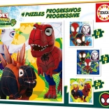 Educa Puzzle Spidey és csodálatos barátai: Dino-háló 4 az 1-ben csodálatos szórakozást kínál kicsiknek és nagyoknak, különböző nehézségi szintekkel és változatos méretű darabokkal.