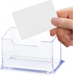 A névjegykártya tartó lehetővé teszi a névjegykártyák rendezett és esztétikus bemutatását, ami növeli az ügyfelek és üzleti partnerek kiszolgálásának kényelmét. Kompakt méretének köszönhetően könnyen elhelyezhető az asztalon vagy a pulton anélkül, hogy felesleges helyet foglalna. A termék jellemzője a nagy tartósság, karcállóság és egyszerű karbantartás.