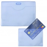 Vízszintes tok az igazolványkártyához egy praktikus és esztétikus megoldás beléptető kártyák, dolgozói igazolványok és más dokumentumok tárolására. Átlátszó kék anyagból készült, kiváló láthatóságot biztosít a tartalomnak, miközben megvédi a dokumentumokat a szennyeződésektől, karcolásoktól és nedvességtől.