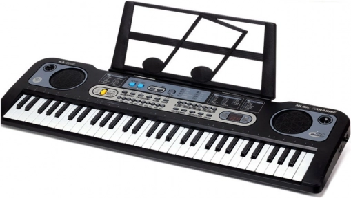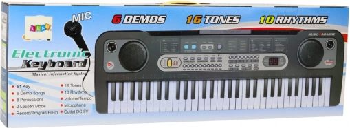 A fekete elektronikus billentyűs hangszer világító billentyűkkel és gazdag funkciókészlettel van ellátva, amely lehetővé teszi a gyerekek számára nemcsak saját dalok összeállítását, de a már mentett dallamok lejátszását is. Elérhető 6 demó dal, 16 hang, 10 ritmus, valamint felvétel és lejátszás funkció. A csatlakoztatott mikrofon lehetővé teszi a gyerekek számára, hogy zenére énekeljenek, és valós fellépésként érezzék magukat.