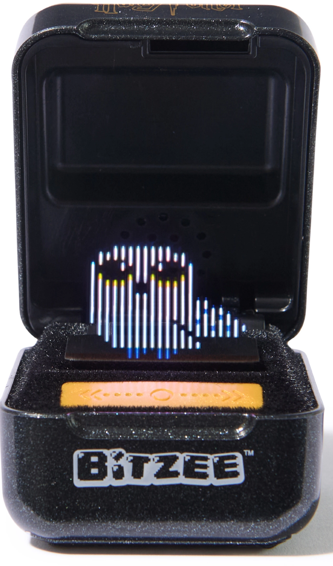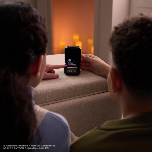 A Bitzee HARRY POTTER egy stílusos fekete–arany kapszula a Roxfort címerével, amely egyedülálló holografikus megjelenítésének köszönhetően kel életre. Reagál az érintésre, húzásra, döntésre és rázásra, és varázslatos hangokkal, animációkkal jutalmaz. Minden interakció előreviszi a játékot, és új szereplőket, valamint a filmek által inspirált élményeket hoz.