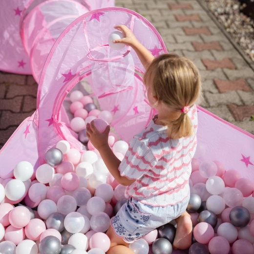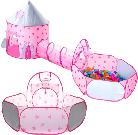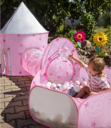 Teremtsen a gyerekeknek saját királyi birodalmat a Woopie 3 az 1-ben játékszettel. A fenséges, kastélytorony formájú sátor mesemondásra hív, az alagút támogatja a természetes mozgást és koordinációt, a száraz labdamedence pedig biztonságos teret nyújt a labdáknak és a végtelen szórakozásnak (a labdák nem részei a csomagnak). A könnyű, összecsukható szerkezet rugalmas merevítésekkel gyors össze- és szétszerelést, valamint egyszerű hordozhatóságot tesz lehetővé.