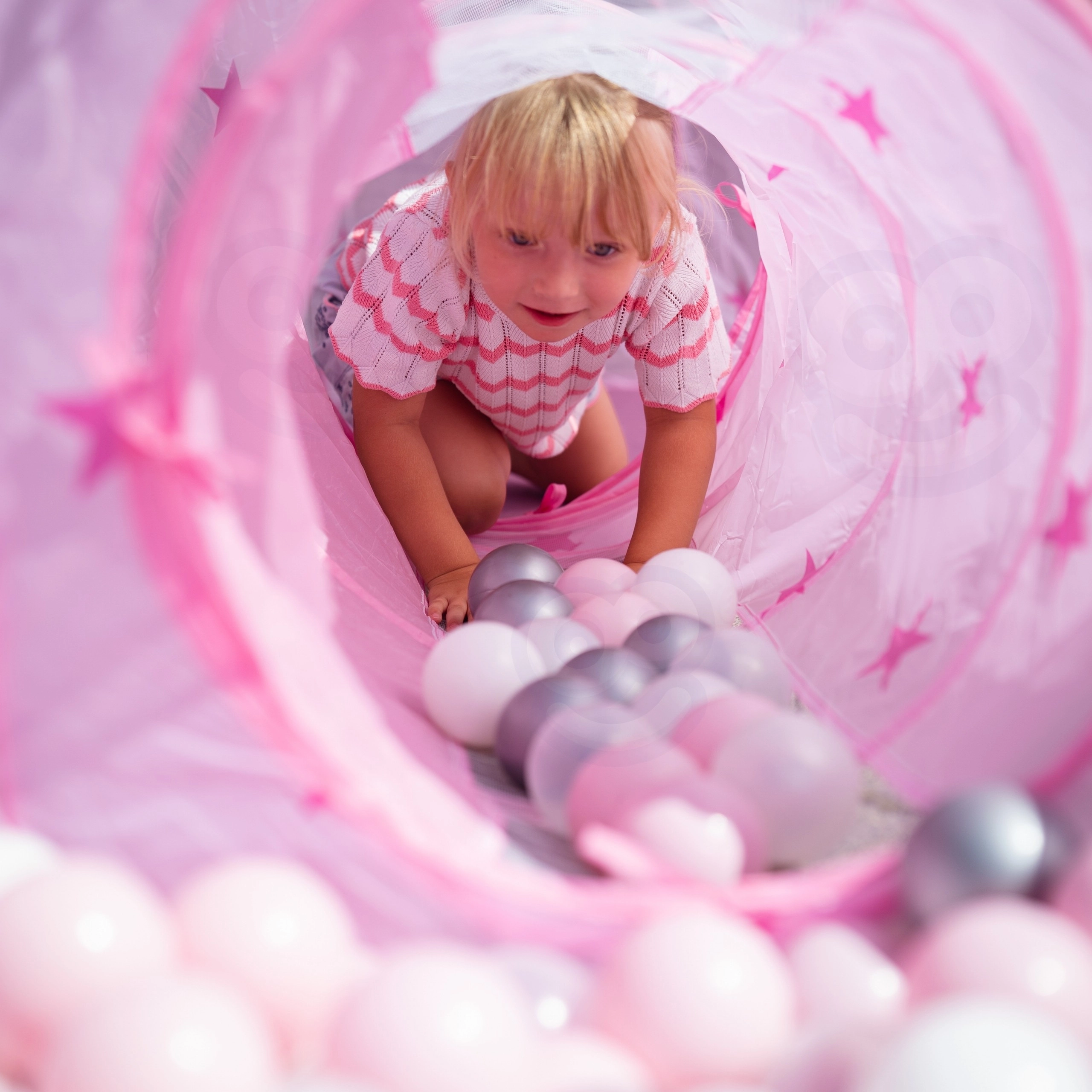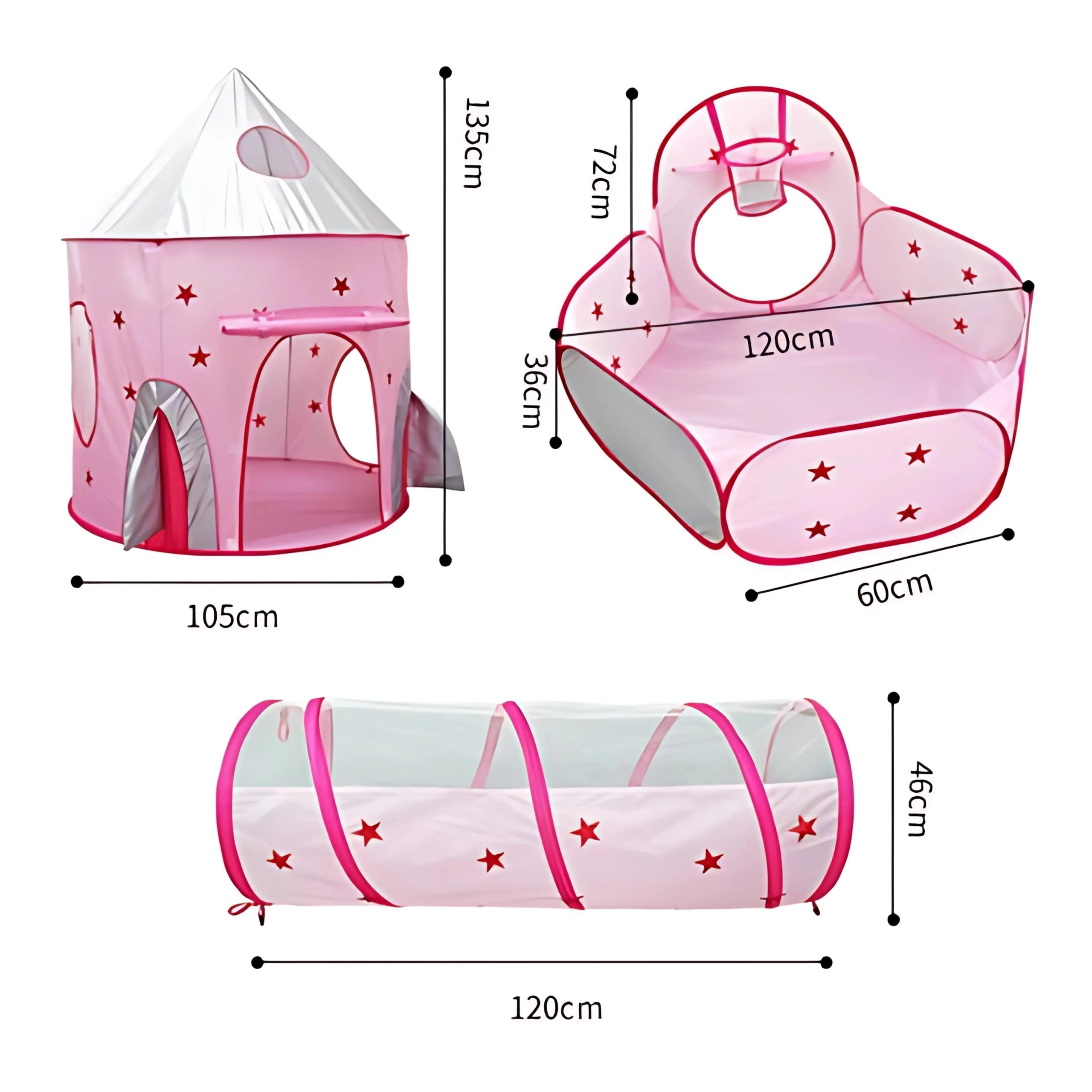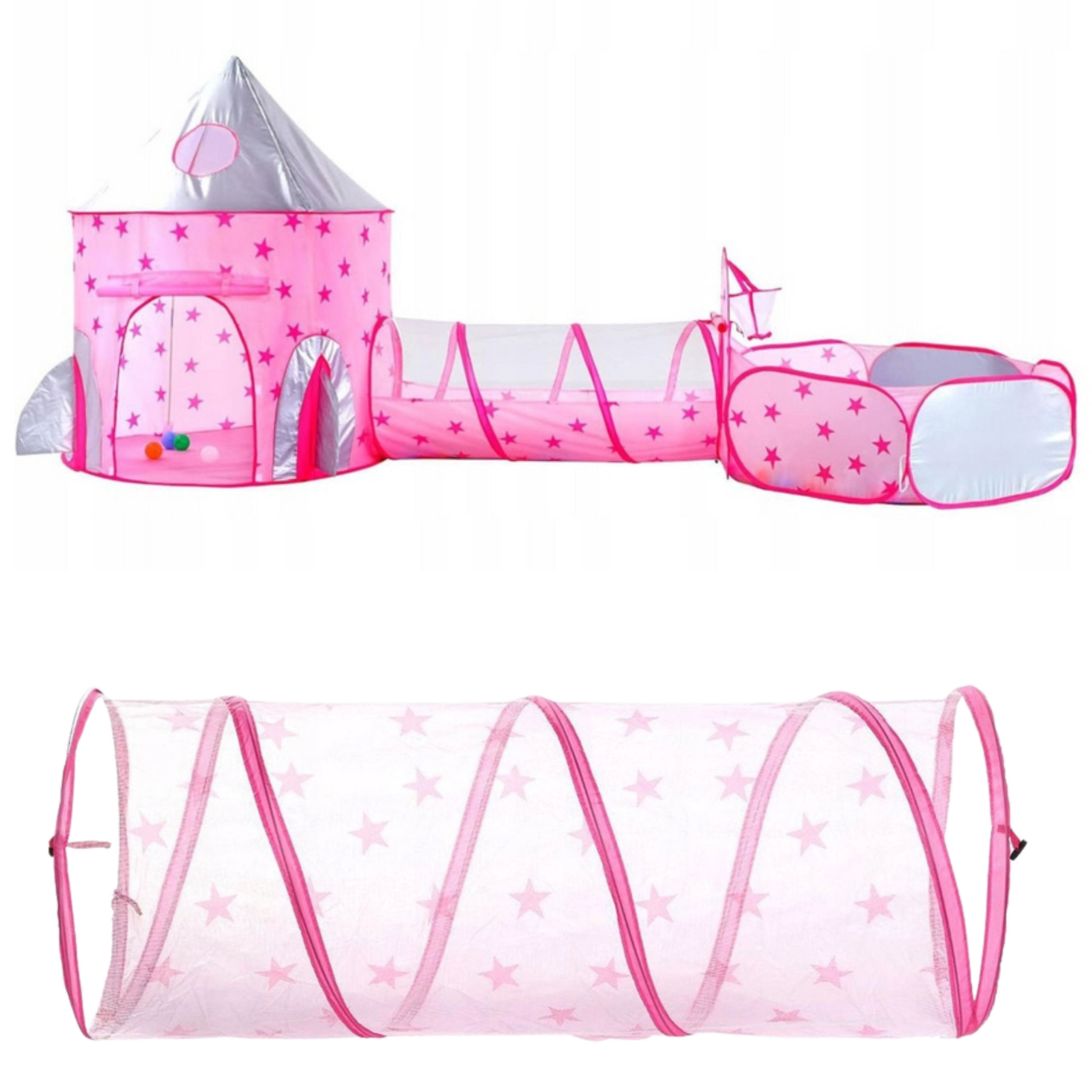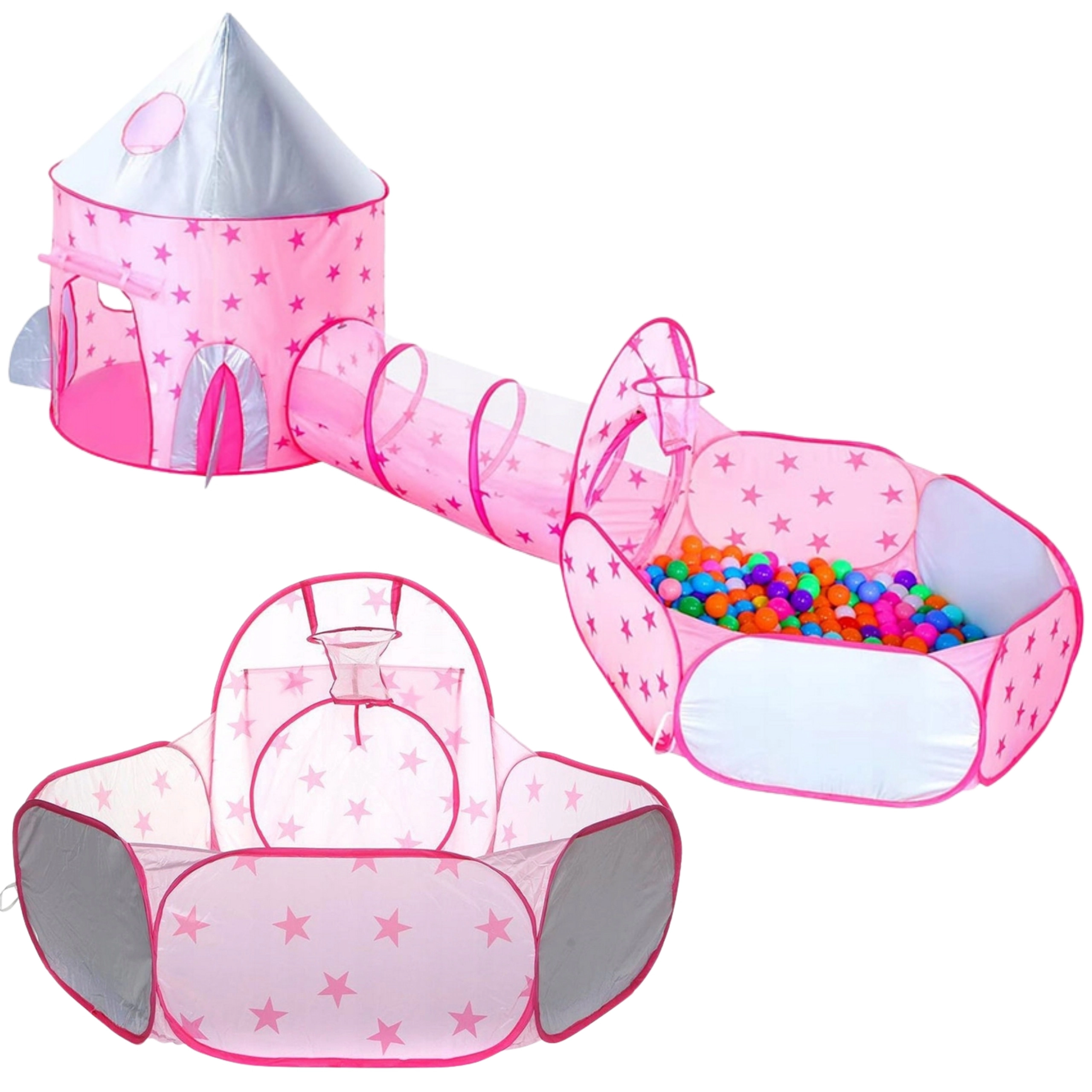 A szett központi eleme a rózsaszín, palotára emlékeztető sátor hálós ablakokkal és feltekerhető ajtóval. Tökéletes rejtekhely kis hercegnőknek és lovagoknak, valamint a fantáziajátékok központja.
