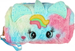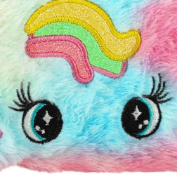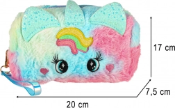 Egy unikornis által inspirált dizájnnal, szivárványmintával és fülekkel, ideális a kozmetikai kellékek tárolására.