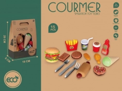 Ebédkészlet PLEJO - Hamburger egy interaktív műanyag készlet, amely lehetővé teszi a gyerekek számára, hogy játékosan megteremtsék és elkészítsék saját hamburgereiket, ezáltal támogatva kreativitásukat és finommotorikus képességeiket.
