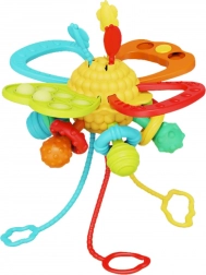 Ez a multifunkcionális játék úgy lett tervezve, hogy különböző érzékeket stimuláljon és támogassa a játékos tanulást. Lágy szilikonból készült mozgatható zsinórokat tartalmaz, amelyek ideálisak rágásra és húzogatásra, enyhülést hoznak a fogzás időszakában. Minden zsinór más színű és textúrájú, ami stimulálja a gyerek tapintási és látási érzékeit.