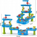 - - Különböző területeket kínál vízzel és homokkal való játékhoz, beleértve a magas vízesést és a medenceszekciókat