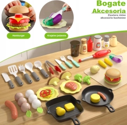 Serpenyők, eszközök, tányérok, evőeszközök és változatos grillételek ösztönzik a fantáziát és fejlesztik a finommotorikát.