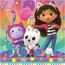 Fedezze fel Gabini házikó varázslatos világát ezzel a lebilincselő puzzle készlettel. 3 motívumból áll, mindegyik 55 darabos, hogy a gyerekek belemerülhessenek az összerakásba és felfedezhessék az egyes képek mögött rejlő történeteket. Az összerakott puzzle méretei körülbelül 18 x 18 cm.