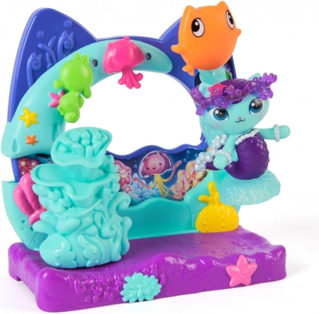 Ez az akváriumos erkélyes játékszett minden játékot ciccenetesen csodás kalanddá varázsol. A stabil talp korallokkal, medúzákkal és kiegészítőkkel ideális a képzeletbeli történetekhez, miközben a bájos macska-tündér sellő Halcicus a gyerekek új kedvenc figurája lesz.