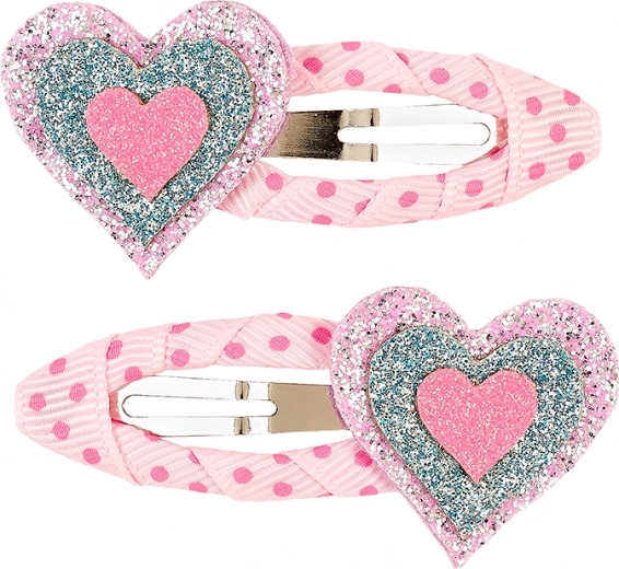 Ez a bájos hajcsat készlet két darabból áll, szívecske mintával díszítve, ami varázst hoz minden gyerekfrizurába. A fém csatrész gondosan be van csomagolva grosgrain szalaggal, ami biztosítja elegáns megjelenésüket és biztonságukat viselés közben.