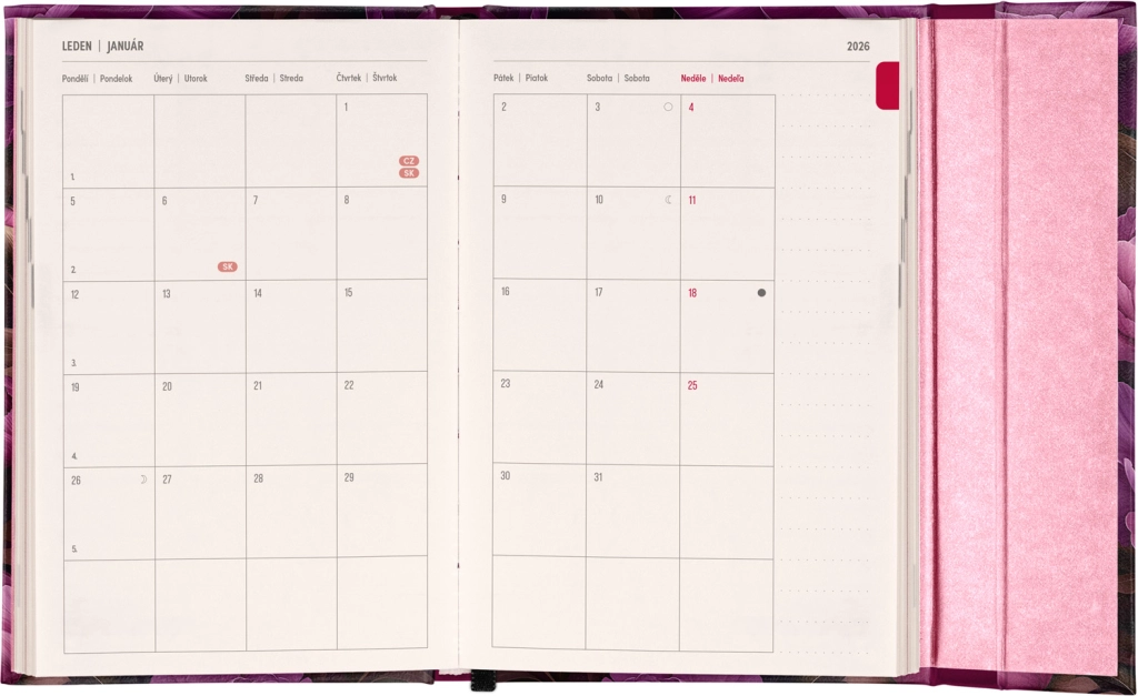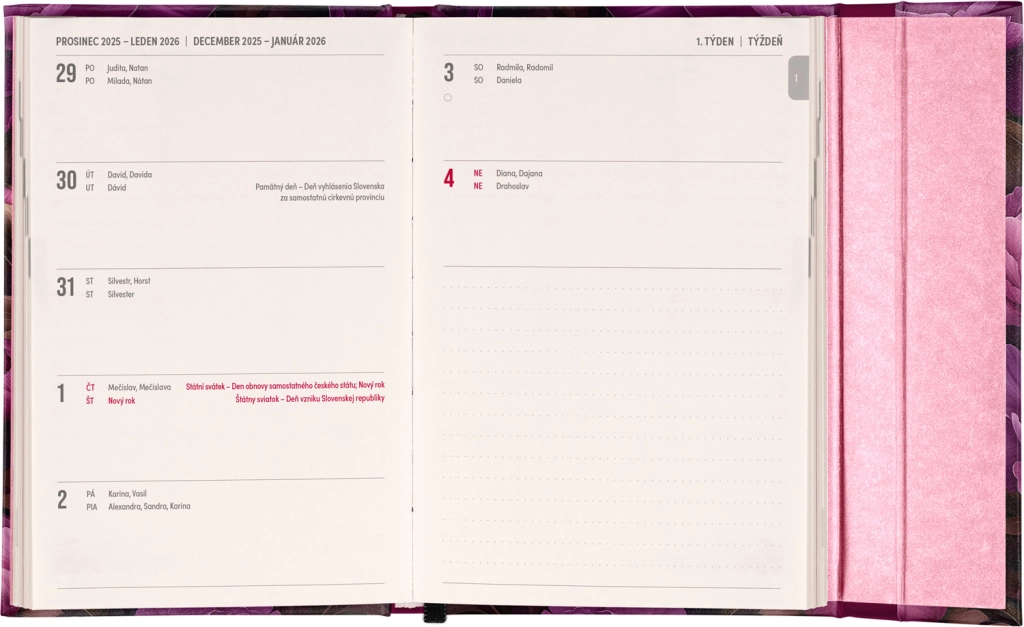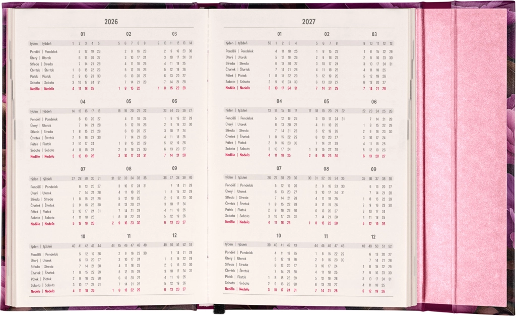 Tartsa rendszerezve terveit ezzel a stílusos heti naplóval, amely mágneses zárással rendelkezik. Tartalmazza a cseh és szlovák naptárakat, jegyzetelési helyet és havi áttekintéseket a hatékony tervezéshez.