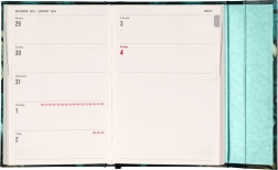 Heti napló mágneses zárral és angol szöveggel, kiváló választás azok számára, akik szeretnék terveiket átláthatóan kontroll alatt tartani. A kétoldalas heti ajánlat és a nemzetközi ünnepek kényelmes hátteret biztosítanak a mindennapi tervezéshez.